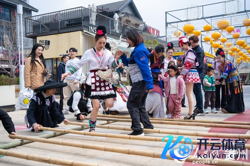多彩贵州城民族竹竿舞诱骗来宾参与体验。东说念主民网 阳茜摄