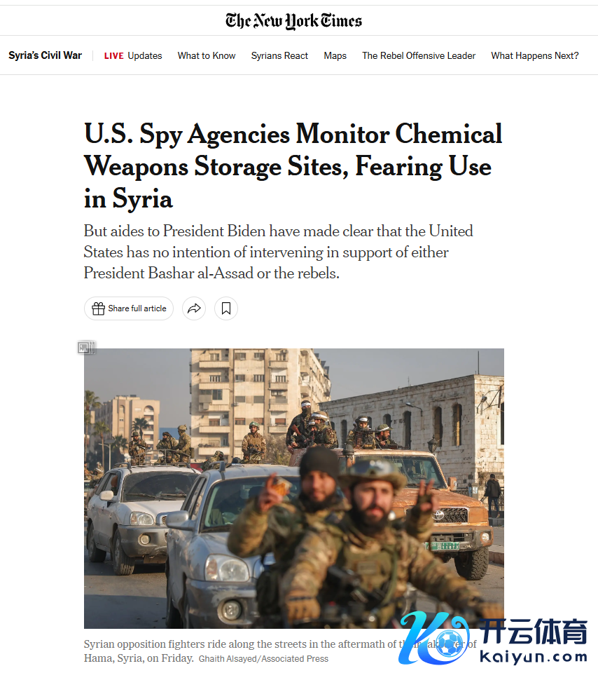 好意思国谍报机构正在密切监视叙利亚化学刀兵的存储情况
