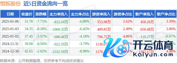 欧洲杯体育1月6日的资金流向数据方面-开云「中国」kaiyun网页版登录入口