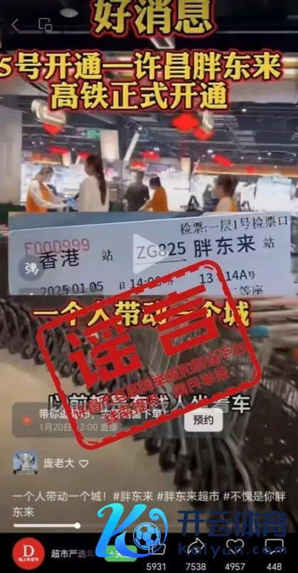 1月9日,南财快讯·辟谣旋风队从“网信许昌”获悉,近日,许昌市委网信办接寰宇举报,微信视频号“超市严选年货好物”发布视频信息“香港-许昌胖东来高铁稳妥洞开”。