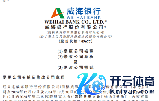 4000亿范围级别的港股上市银行威海银行选择更名,承接将公司称号、公功令规以及公司的标识进行修改更换。