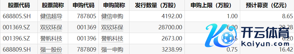 体育游戏app平台预测总共募资51.56亿元下周将有4只新股刊行-开云「中国」kaiyun网页版登录入口