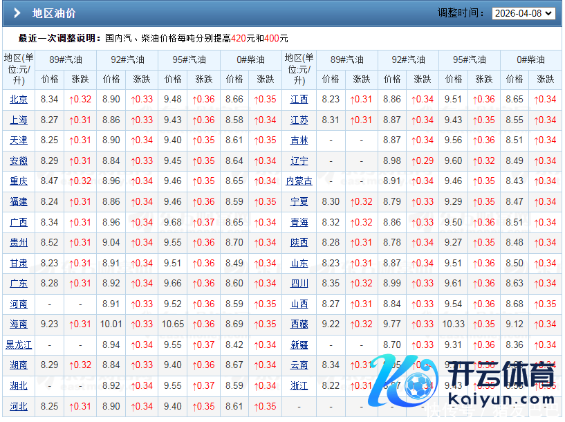 据了解,今天,2026年4月17日,本年第8次调价,新周期投入第8个交游日,参考隔夜原油阛阓,WTI原油以及布油报价在94.69~99.39好意思元/桶,油价大涨超3.72%,再行评估后,新周期第8个交游日原油均价97.61好意思元/桶,三地原油变化率-6.31%,汽柴油计议下降增多至600元/吨,换算本次9295号汽油下降0.49~0.53元/升傍边!